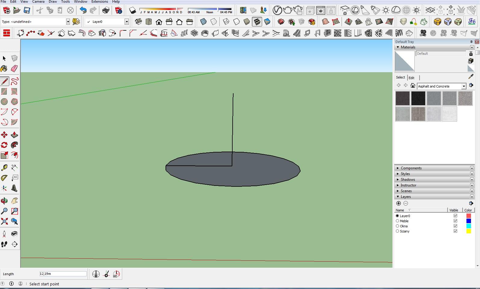 To draw a sphere in SketchUp, we need to use the "Follow me" tool. First, we must start by drawing our path that this tool will follow.
