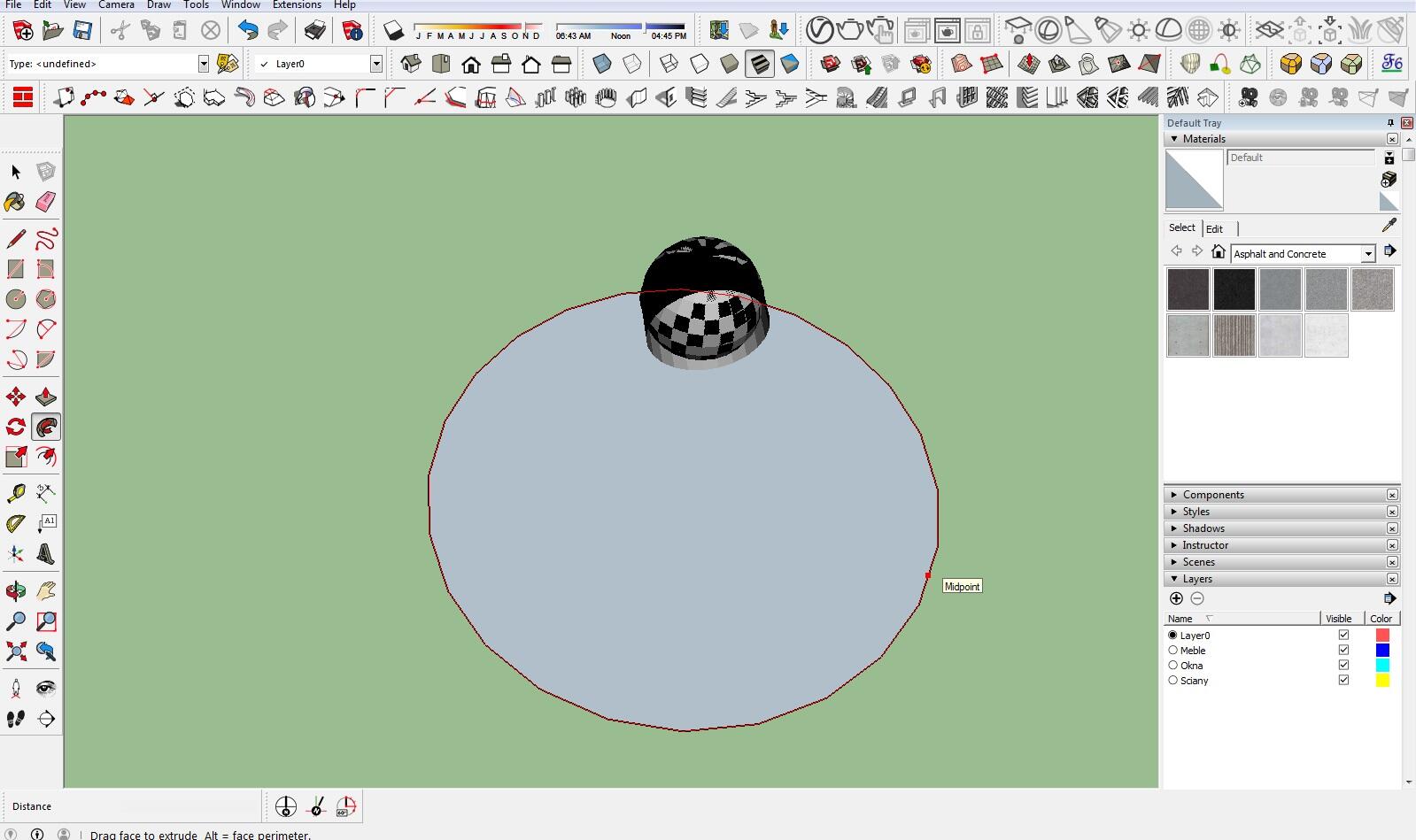 I recommend using the first method—double-clicking on the surface to create the sphere—instead of slowly following the path, because the second method requires a bit more time. It can also be more time-consuming since SketchUp may not generate the sphere cleanly and may encounter issues with the connection.