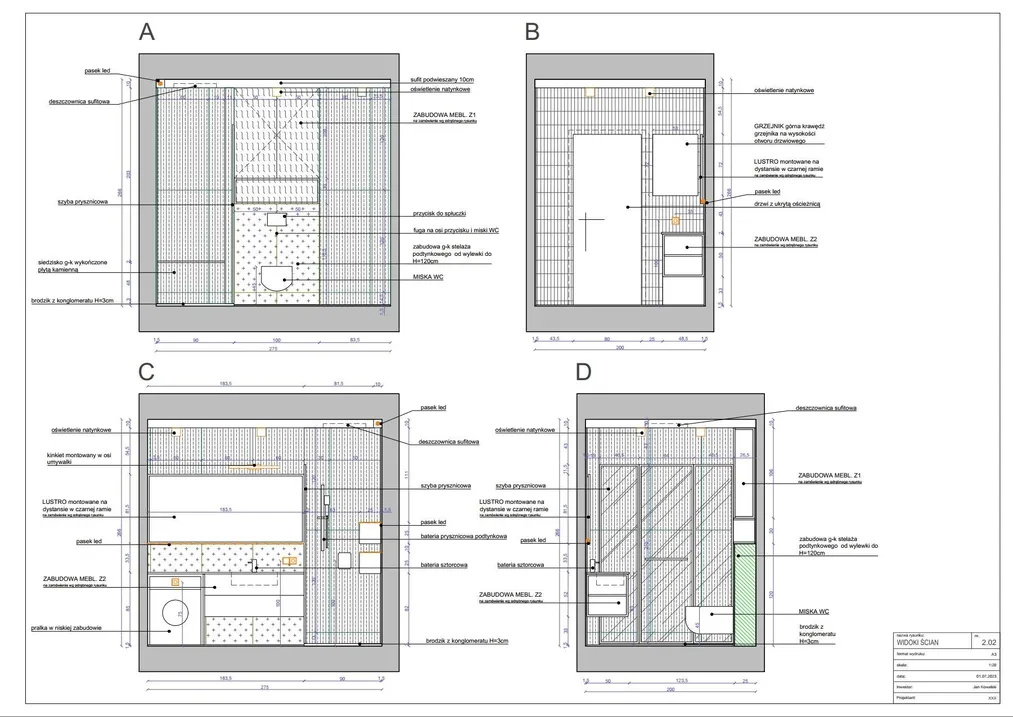 Upon the approval of the space planning concepts, the designer proceeds to detailed planning of the electrical, lighting, and plumbing installations. It is at this stage that the locations for sockets, lighting points, and water and sewage connections are determined. Simultaneously, the selection of finishing materials such as tiles, floor coverings, paints, wallpapers, as well as furniture and decorations, takes place.