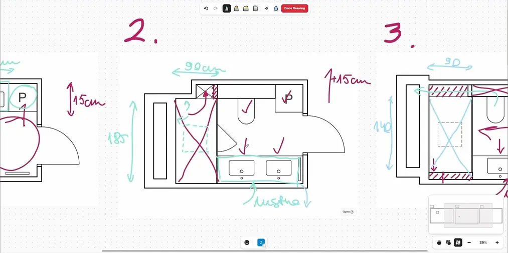 The first step in interior design is a detailed inventory of the room. The designer takes detailed measurements that will serve as a basis for creating the space plan. Based on this, 2-3 interior layout concepts are developed, taking into account the client's preferences and lifestyle. This stage is crucial for the functionality and usability of the designed interior.