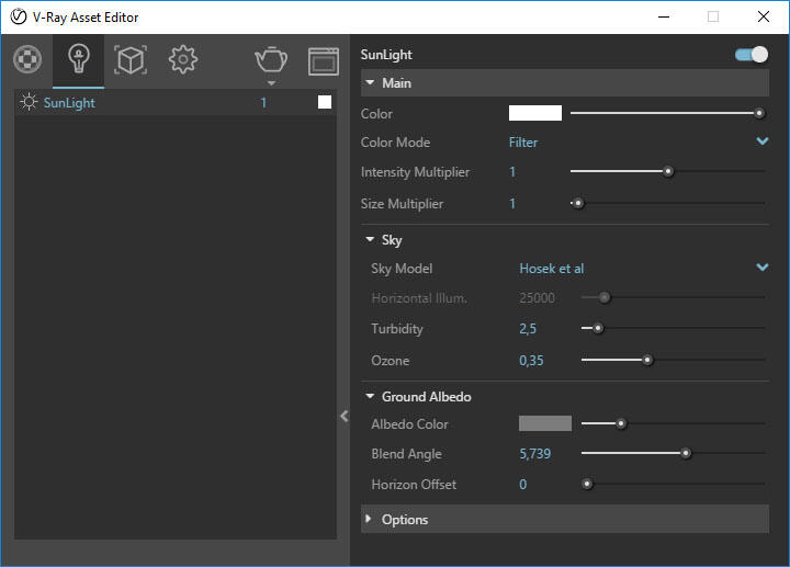 Entre los muchos parámetros de SunLight, los más importantes parecen ser Intensity Multiplier y Size Multiplier. Estos controlan, respectivamente, la intensidad de la luz y el desenfoque de los bordes de las sombras proyectadas. Al modificarlos, nos acercamos a las características propias de la realidad.