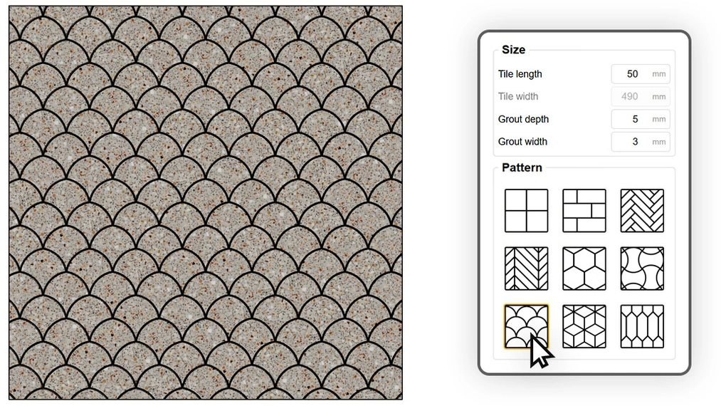 La mayor molestia de los generadores automáticos es la falta de control sobre cómo se alinea el patrón respecto a las paredes. A menudo acaba con recortes antiestéticos en las zonas más visibles. Custom Ground Wizard lo soluciona gracias a su función de orientación inteligente.