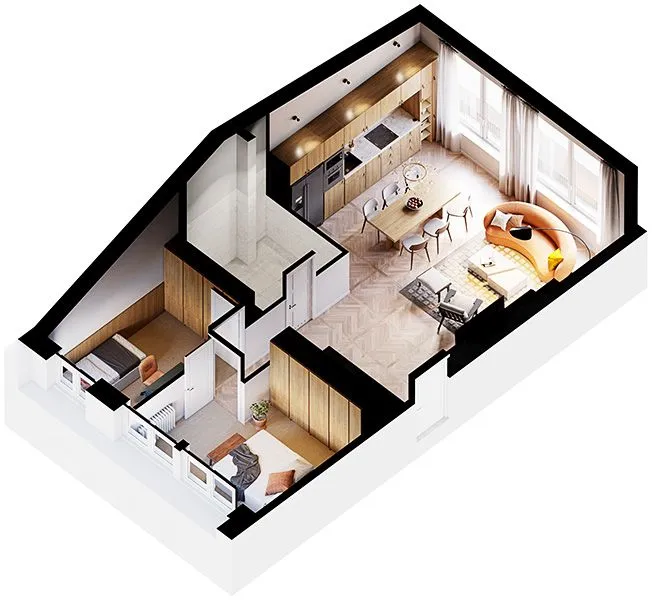 The training is based on an existing 60-square-meter attic apartment in a Warsaw tenement house. The floor plan used is an actual architectural project. This type of challenge may well arise in your professional career, so it has high practical value.